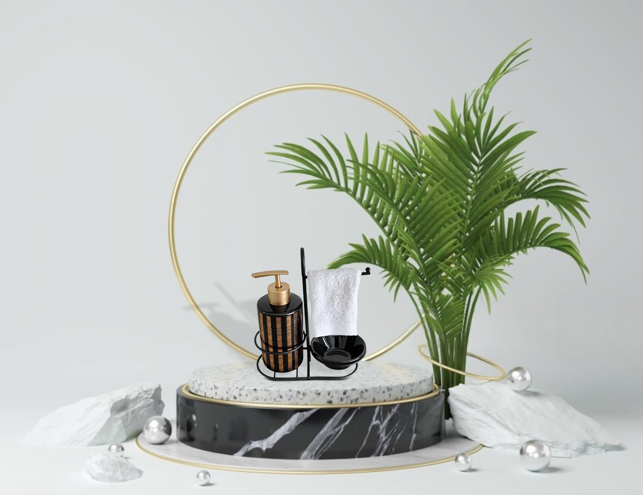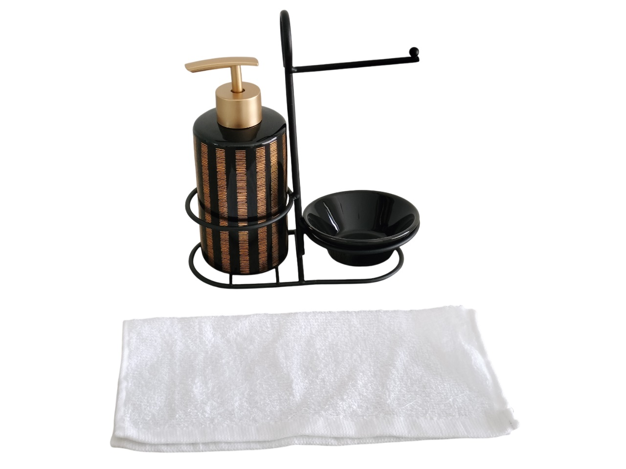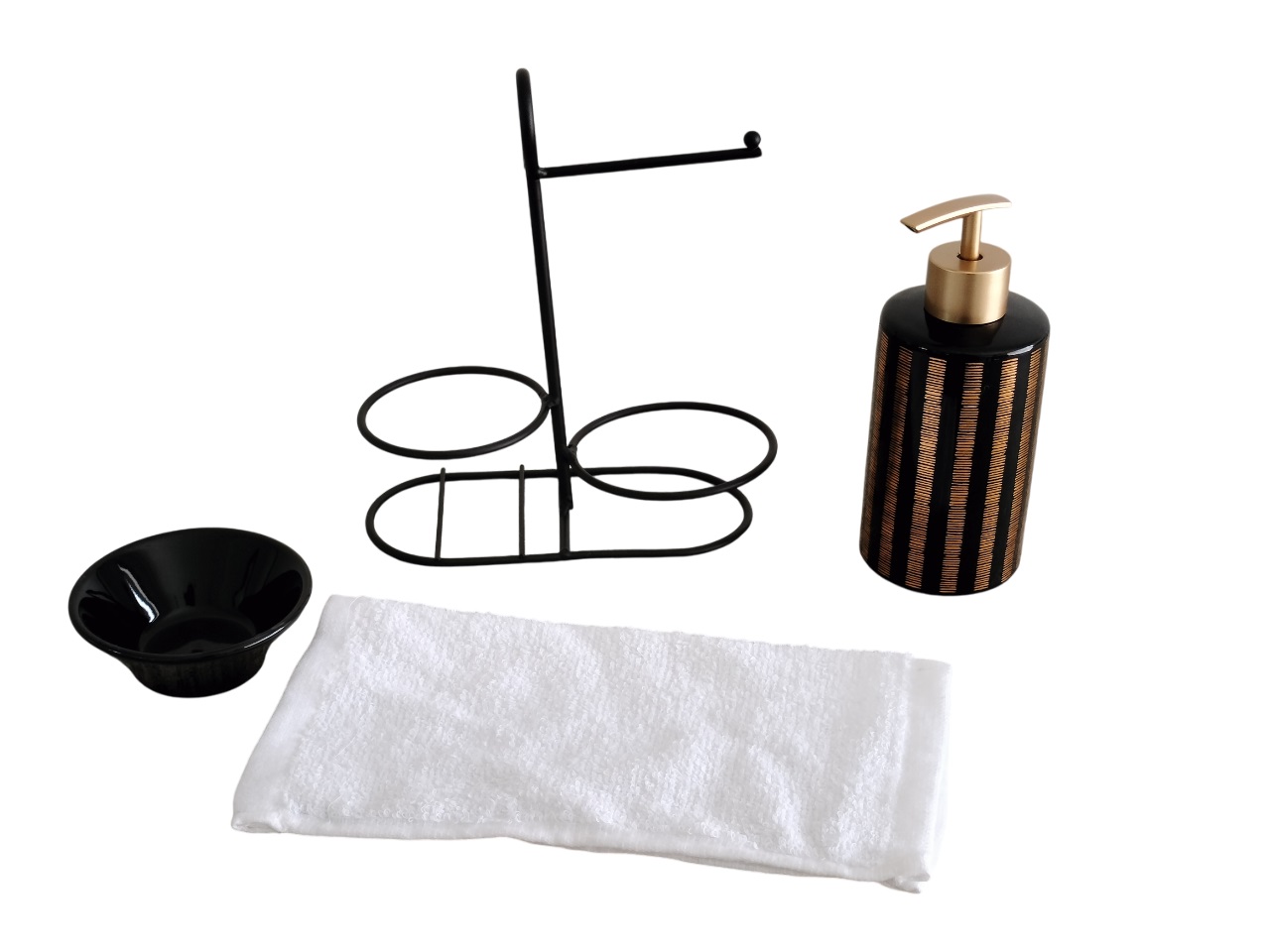 – Complete with a towel holder and matching dish, this set keeps your essentials within reach while elevating your bathroom décor.