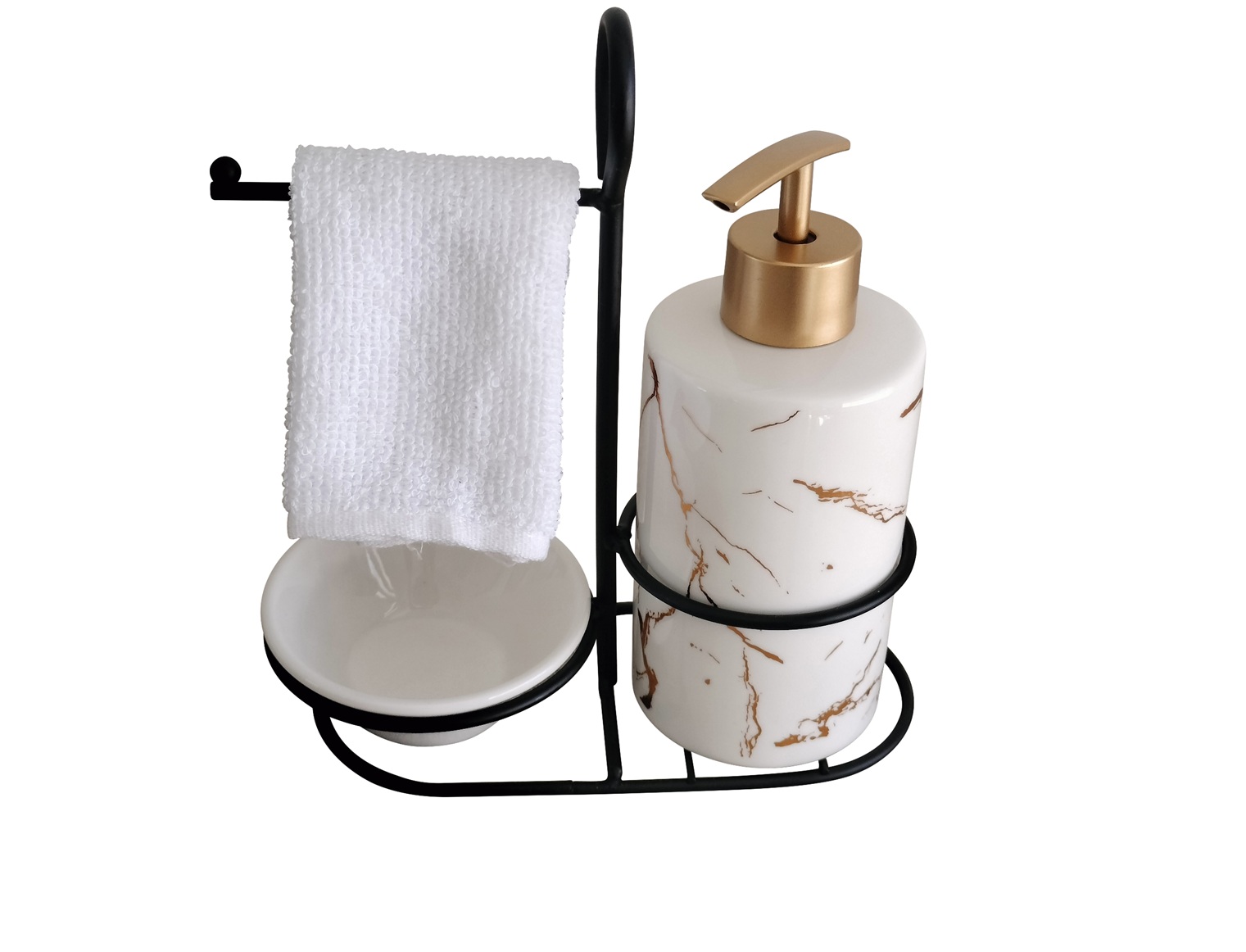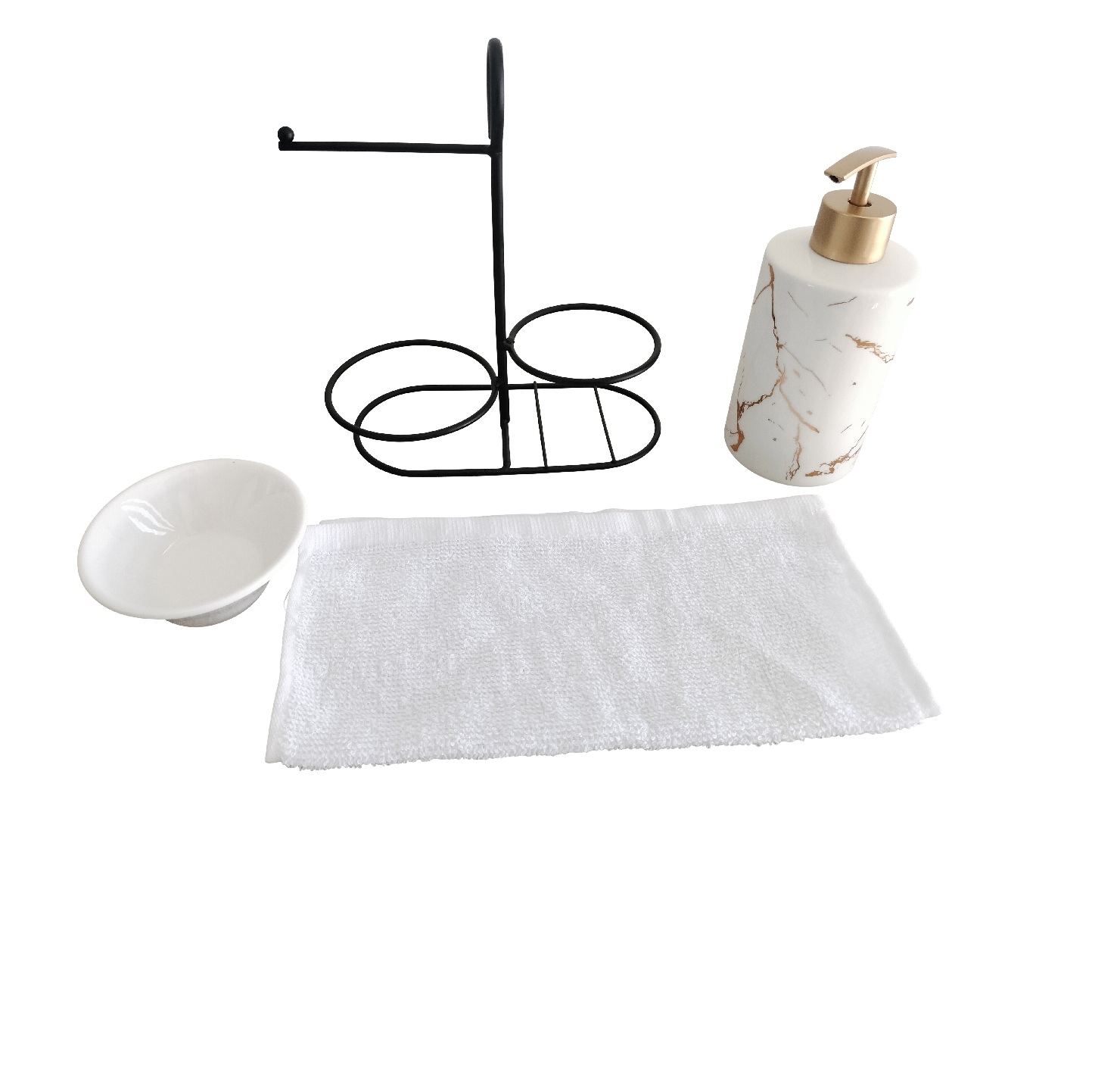 – Complete with a towel holder and matching dish, this set keeps your essentials within reach while elevating your bathroom décor.