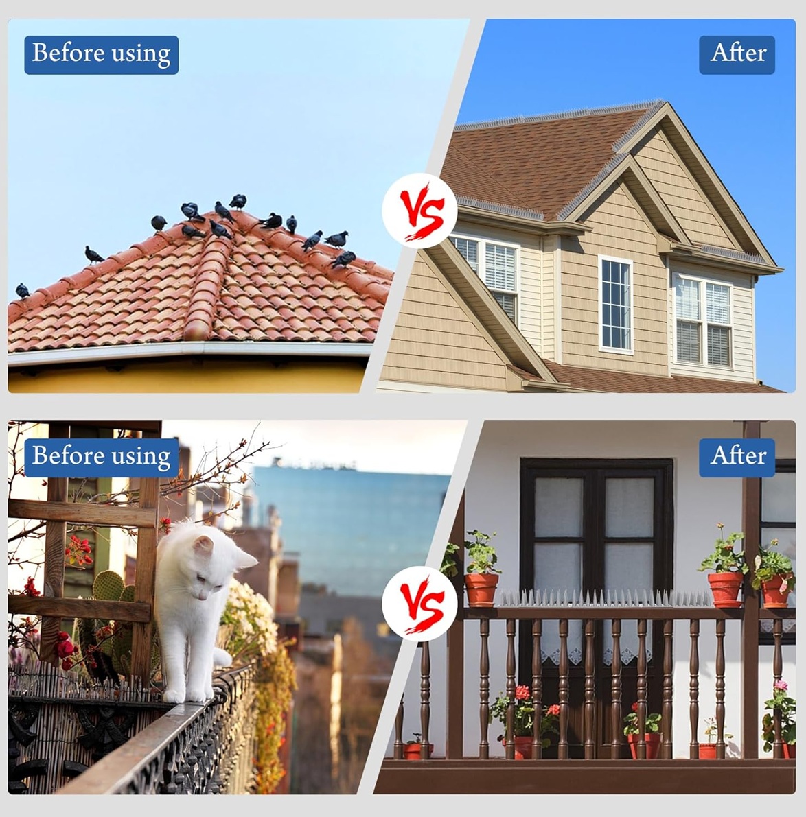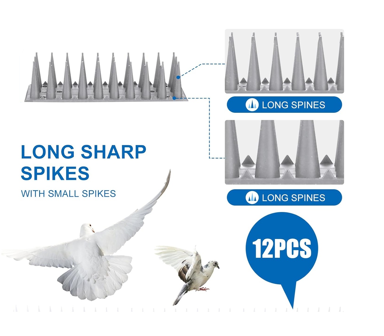 Upgraded Bird Spikes: Adding small spikes beside long spikes makes birds unable to stand in the gaps of the bird spikes, which perfectly prevents small animals from standing on it, and the effect is greatly enhanced.