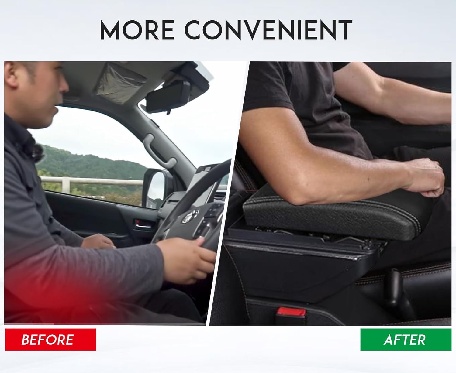 •Enhanced Comfort- Say goodbye to uncomfortable car journeys with our adjustable and liftable pad. Simply press the button in front of the armrest box to raise and slide the pad forward, providing better support for your arm.