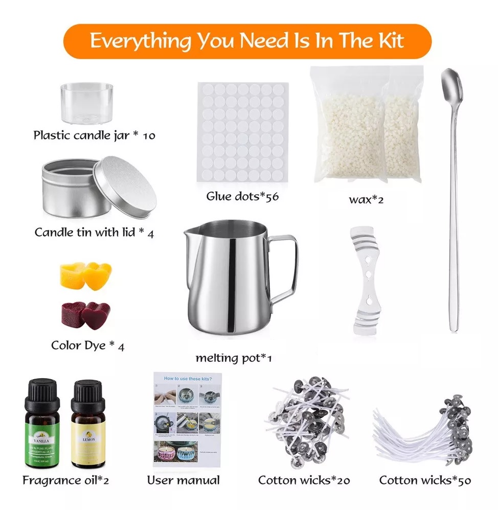 Your Own Candle Making Kit: This candle making kit has everything you need to make your own scented candles. Enjoy beautiful, scented candles made with wax, fragrant scented oils, and your choice of color.