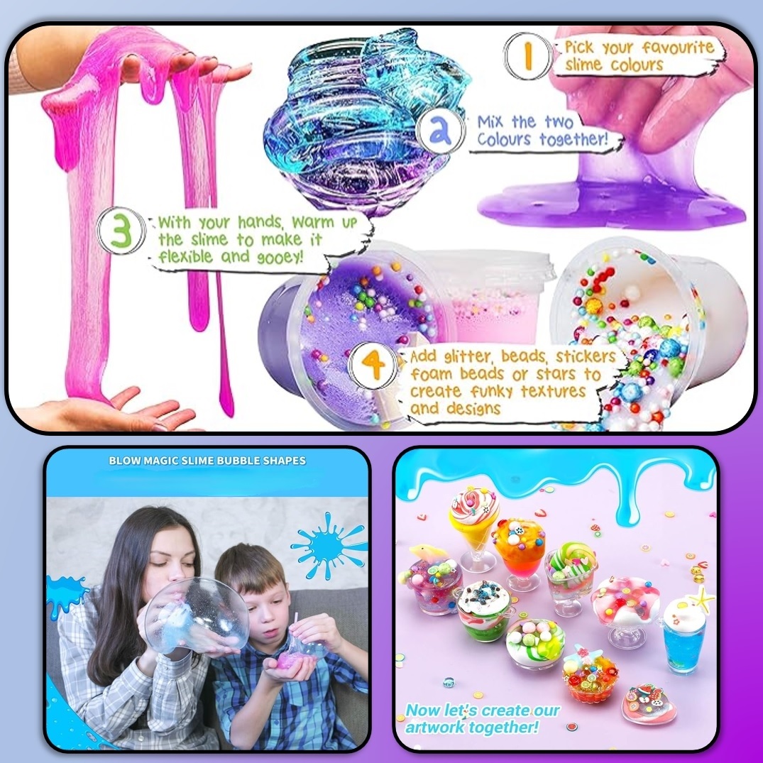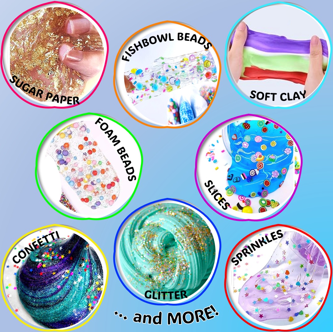 – Easy to use: Comes with simple instructions, recipes, tips and tricks. Just mix your favorite slime colors with activator solution, pick your chosen accessories – glitter, fishbowl beads, sugar paper, confetti, sprinkles, foam beads (all included)- and add to your slime to create funky textures and colorful designs