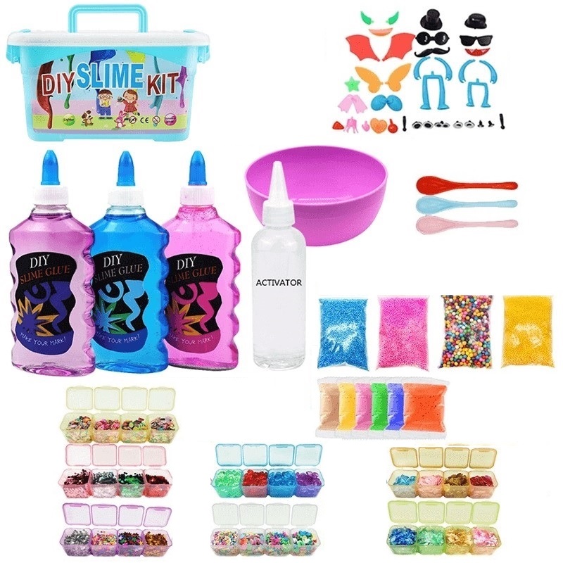 – Perfect all-inclusive gift idea: Includes storage box, as well as everything required to mix and make a variety of slime with multiple color slime glues, soft clays and accessories