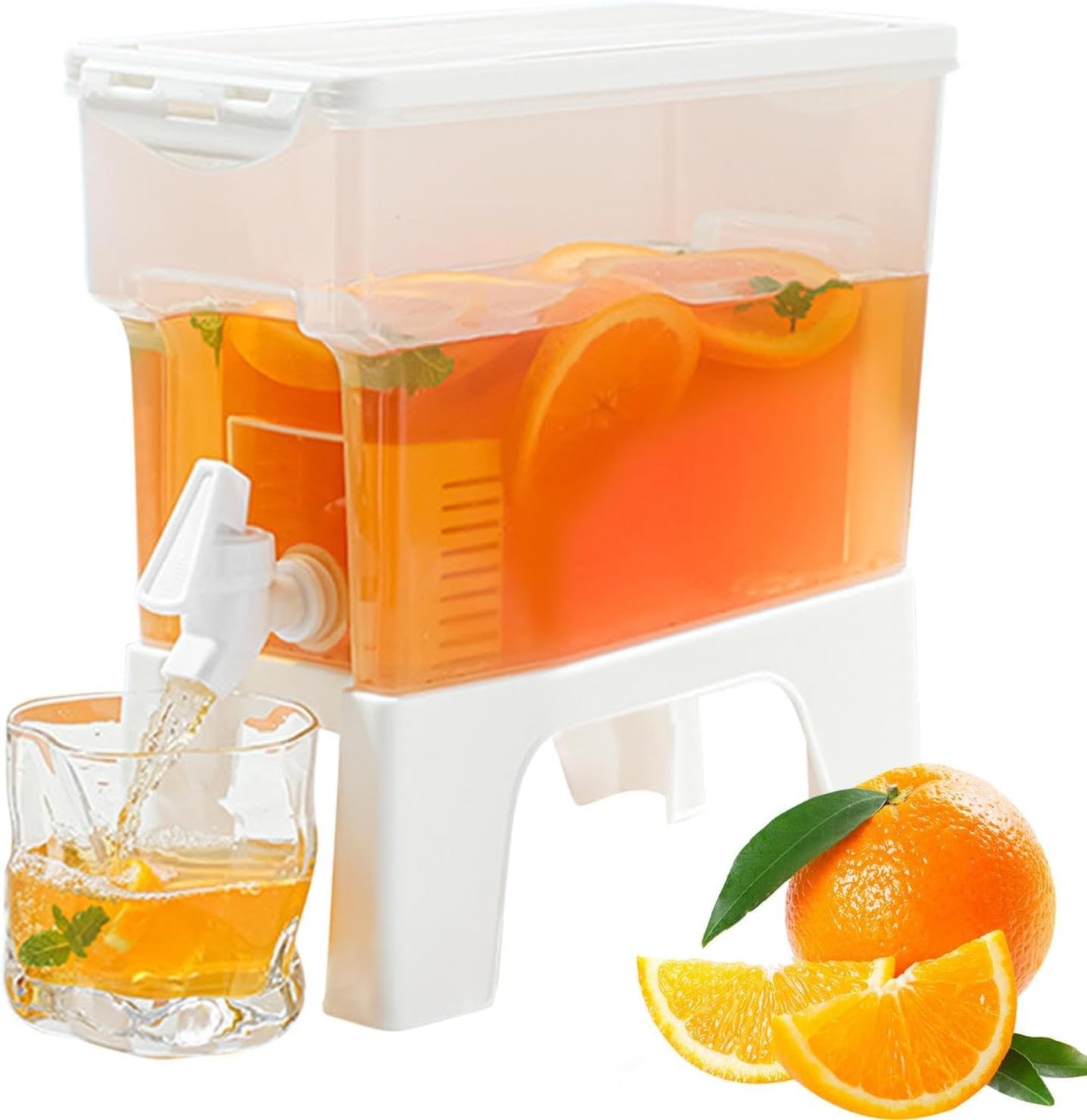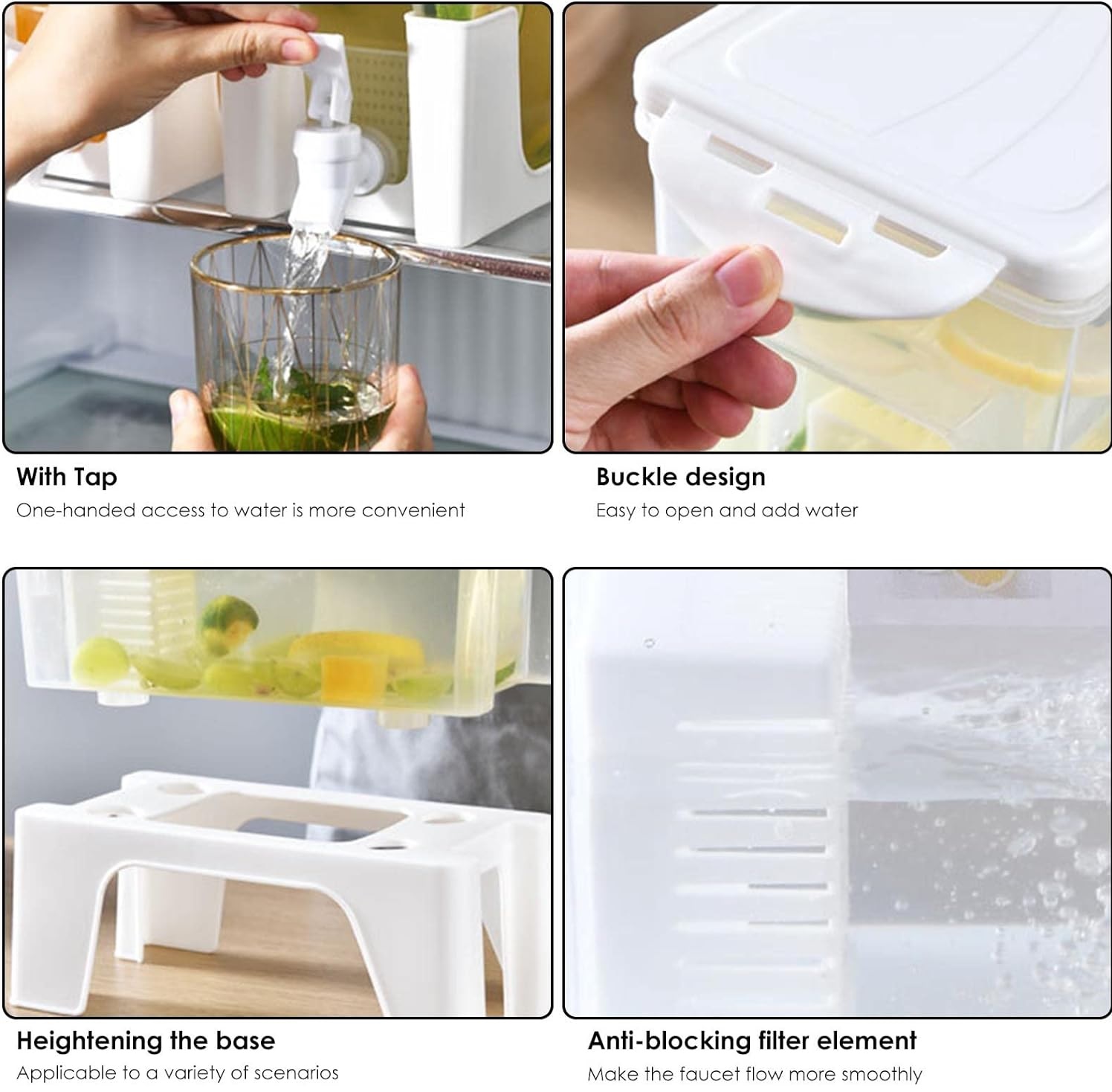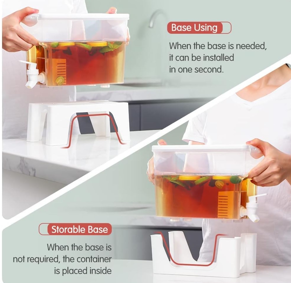 – Removable Stand: The transparent Beverage Dispenser allows you to directly see the color and capacity of the drink. It comes with a raised base, which can be upright or inverted.