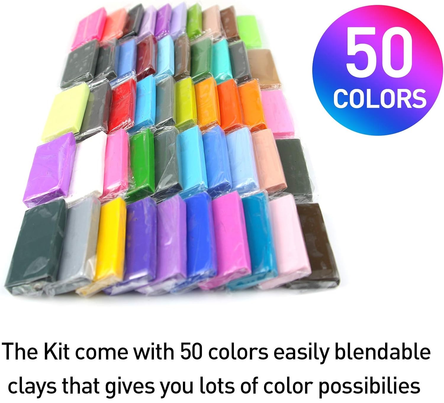 50 Colors: The polymer clay set includes 50 colors ensuring you have more than enough shades to unleash your creativity; Mix and match colors to create endless color combinations